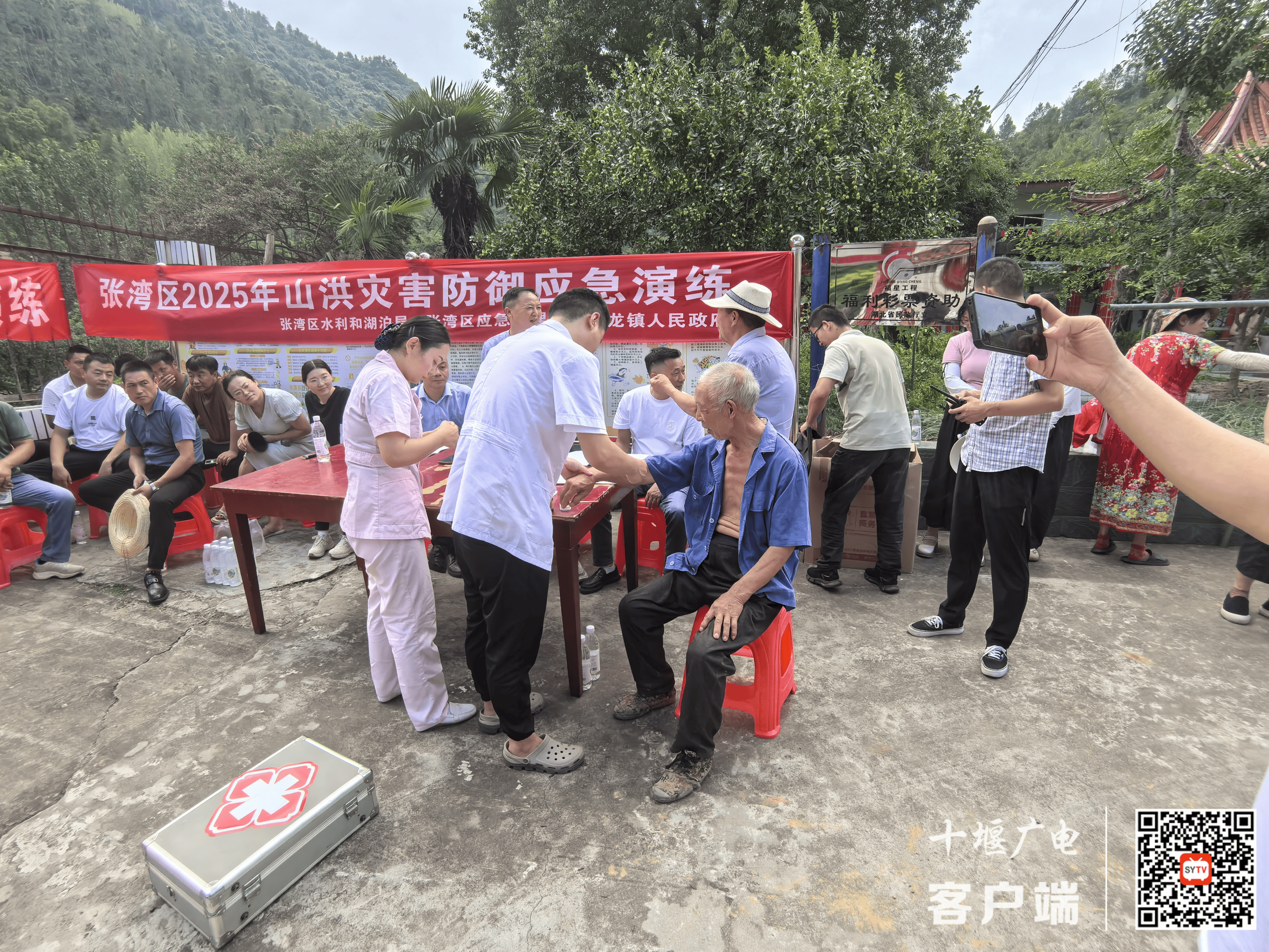 演练现场,“暴雨骤降,堵河流域大坝社区河道水位急速攀升,请黄龙镇立即组织社区落实‘一对一’转移避险,如有险情,第一时间报告!”张湾区防汛办指令一下,黄龙镇值班室闻令而动,不到两分钟,警报声已响彻大坝社区。干部群众闻“汛”而动,应急响应机制高效运转。紧接着,社区防汛小组立即按照预案,通过手摇报警器、铜锣和扩音器等方式,向危险区居民发布紧急转移信号。责任人员各就各位,按照“一对一”包保责任制,迅速引导群众沿着预定的安全路线向指定应急安置点转移。整个过程紧张有序,反应迅速。转移途中,黄龙镇应急办工作人员值守在公路两侧拦截来往车辆,确保演练安全、有序开展。在安置点,后勤保障组迅速清点人数、发放应急物资,医疗救护组对“受伤”和“身体不适”的群众进行了初步检查和模拟救治。整个演练过程指挥顺畅、分工明确、配合紧密,各项环节衔接紧密,成功在预定时间内完成了预警发布、群众转移、医疗救助、应急抢险等多项课目,圆满达到了预期目标。